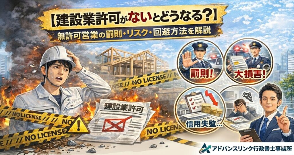 【建設業許可がないとどうなる?】無許可営業の罰則・リスク・回避方法を行政書士が解説